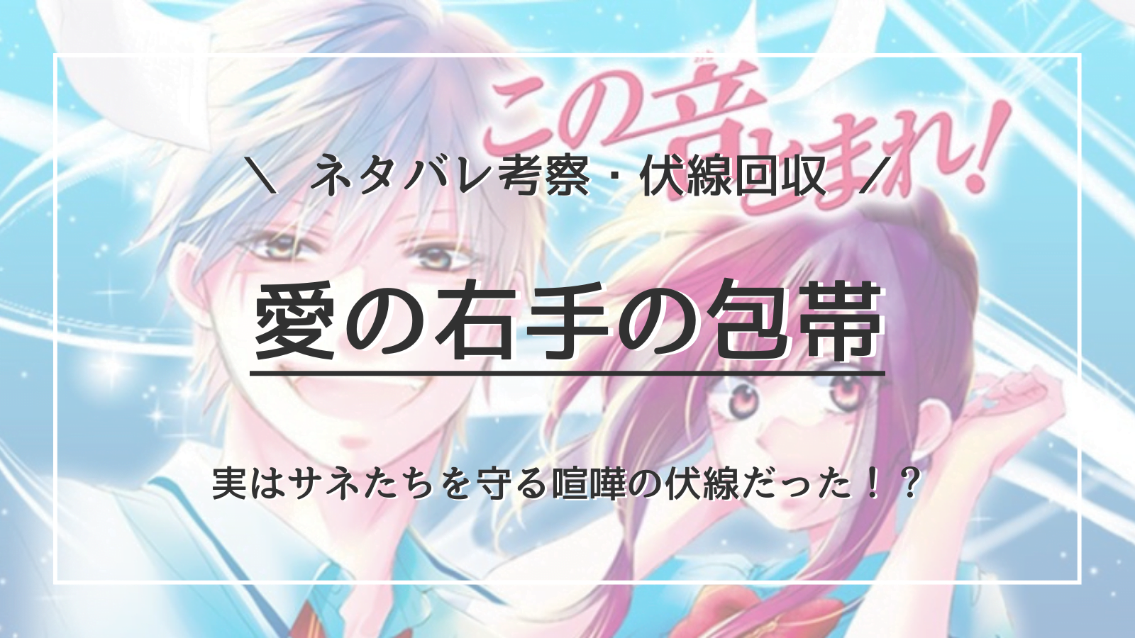 今回の記事では漫画『この音とまれ!』久遠愛の右手の包帯について、まとめていきたいと思います。